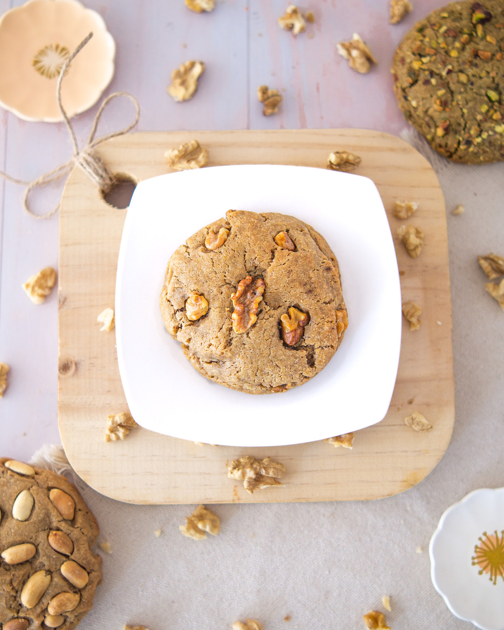 Galleta de vainilla con trocitos de caqui y nueces. Naturalmente dulce, dedicadamente especial.