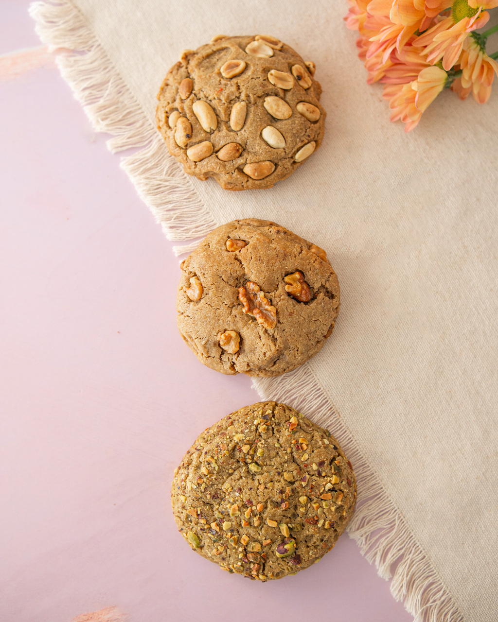 Galleta de vainilla chips de maní y un cremoso corazón de mantequilla maní. Un antojo que no podrás resistir.