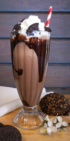 Milkshake intenso y crujiente con helado de chocolate coronado con crema batida, trozos de oreo y salsa de chocolate o manjar, un golpe dulce imposible de resistir.